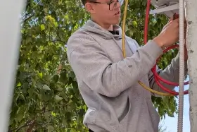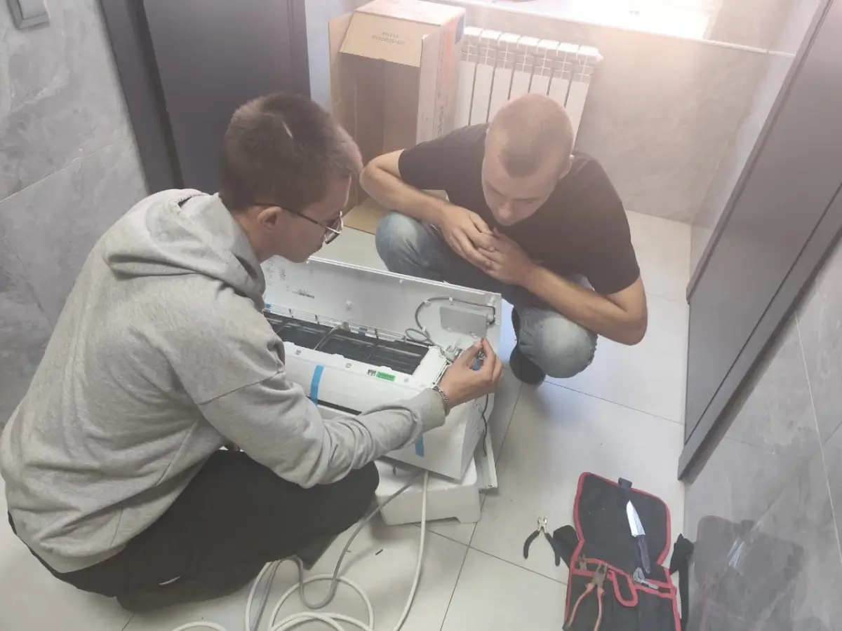 На этой неделе студенты группы 331 по профессии «Машинист холодильных установок» под чутким руководством своего преподавателя, Михаила Сергеевича Ионова, провели уникальное практическое занятие. Ребята не работали на учебных стендах, а выполнили полностью реальную задачу — установили сплит-систему в одном из кабинетов колледжа!