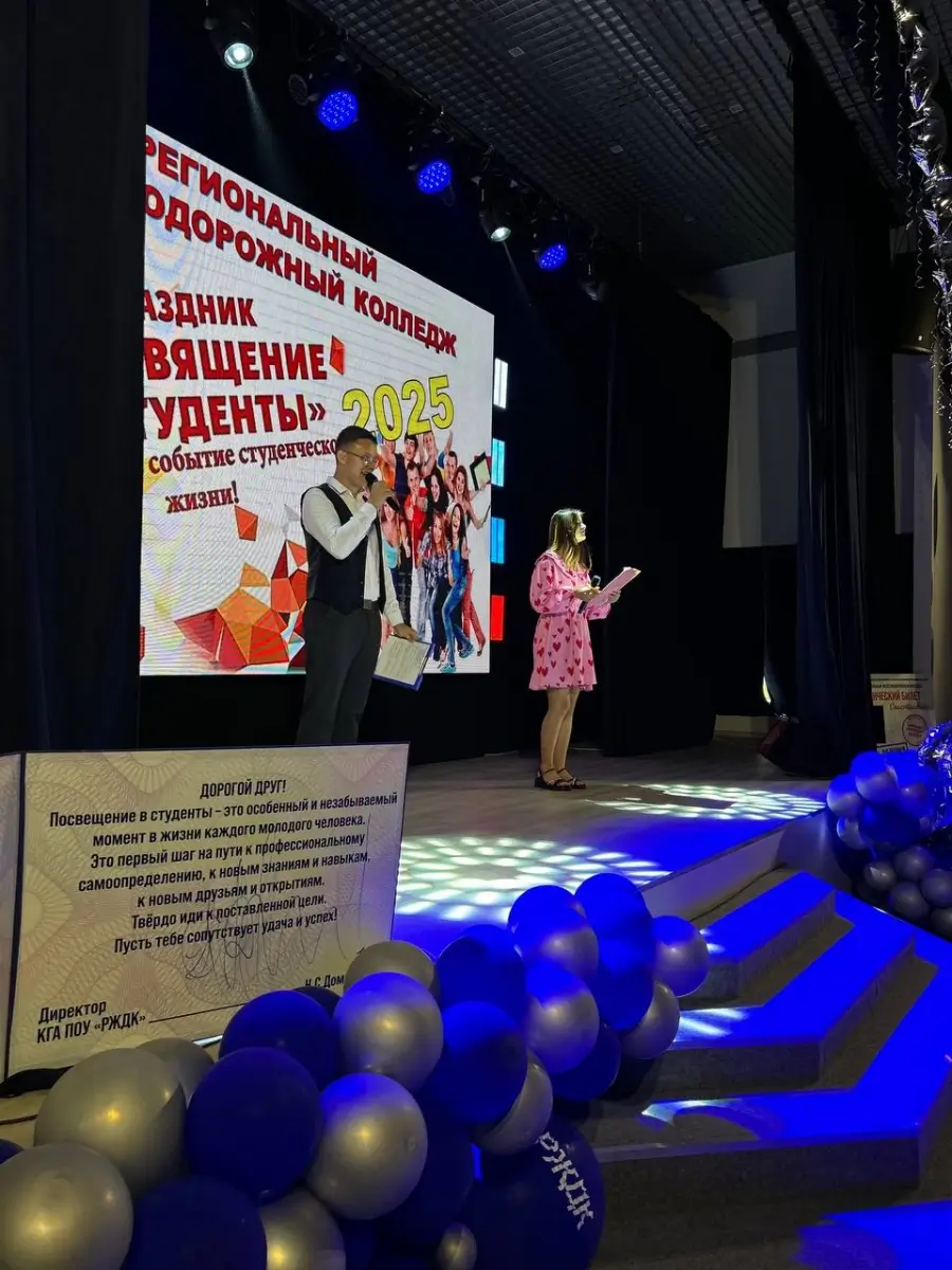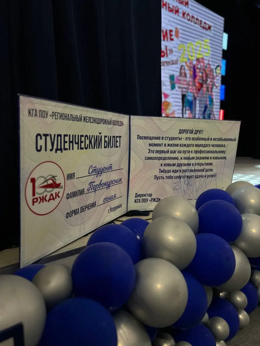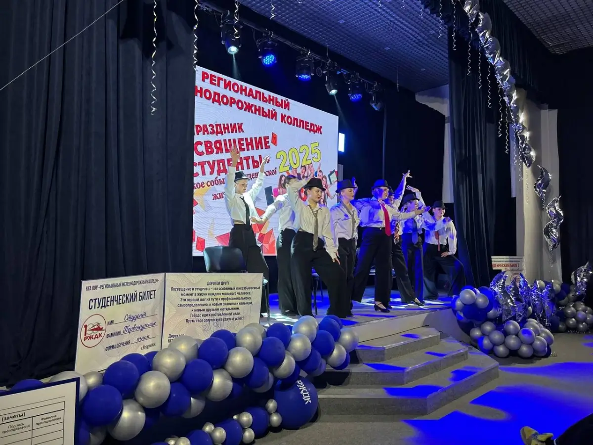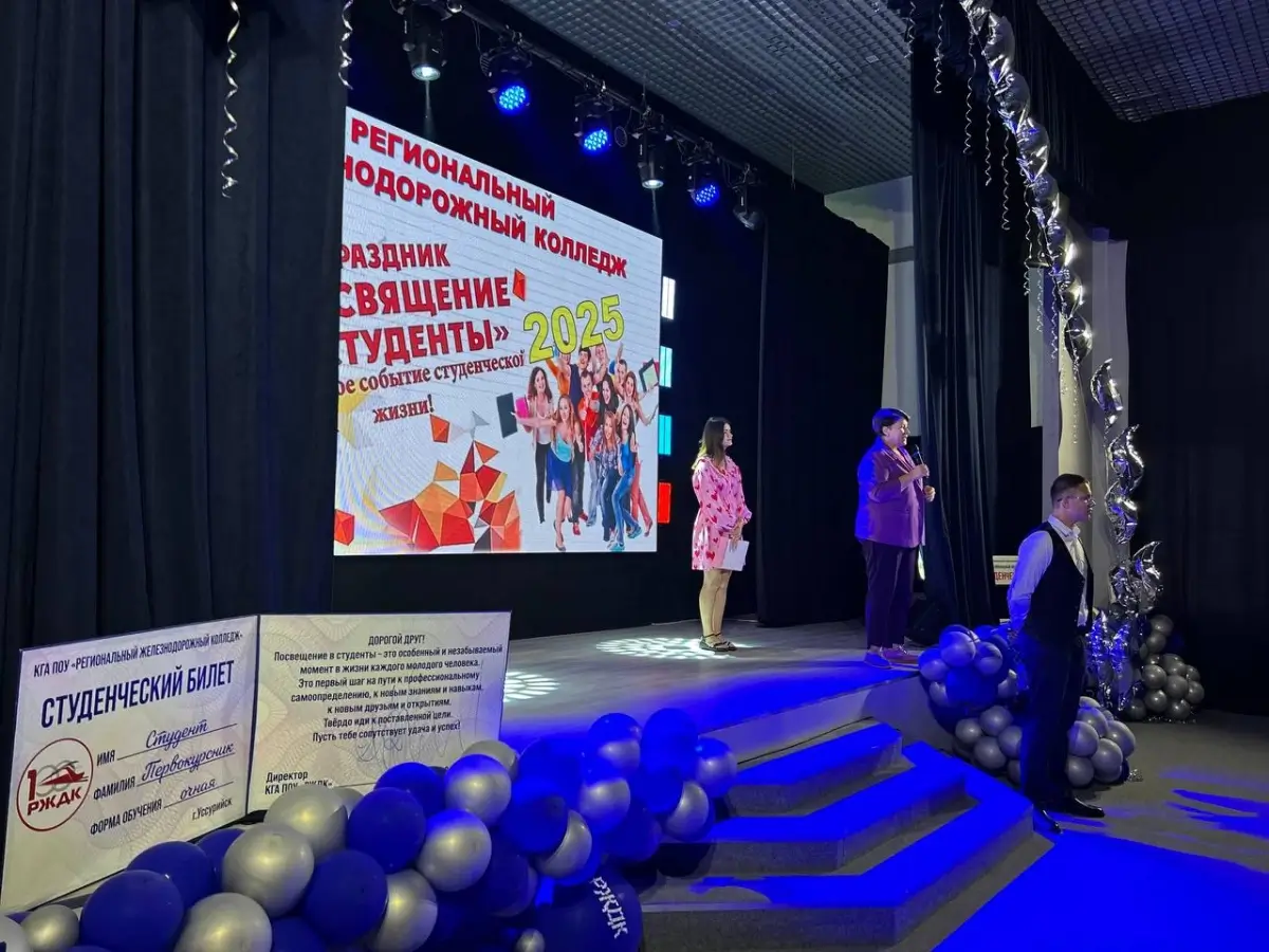 В актовом зале Регионального железнодорожного колледжа прошло торжественное мероприятие "Посвящение в студенты" Посвящение в первокурсники — это яркое ежегодное событие, объединяющие новых студентов и создающие особую атмосферу товарищества и поддержки.