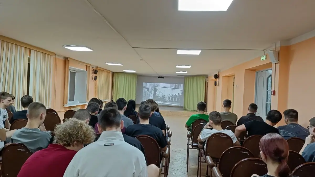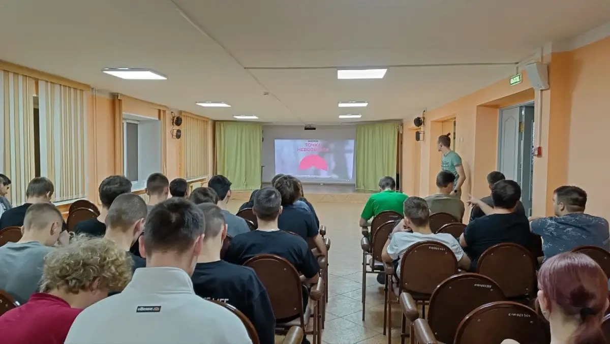 Студенты общежития колледжа 19 января 2026 года вечером посмотрели фильм-хронику «Здесь зори не тихие» о творческой командировке агитбригады «Позывной «Культура» из Владивостока на СВО.