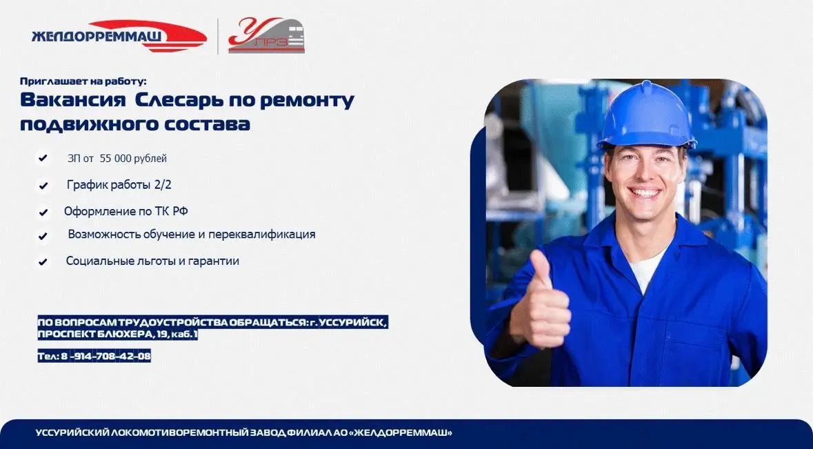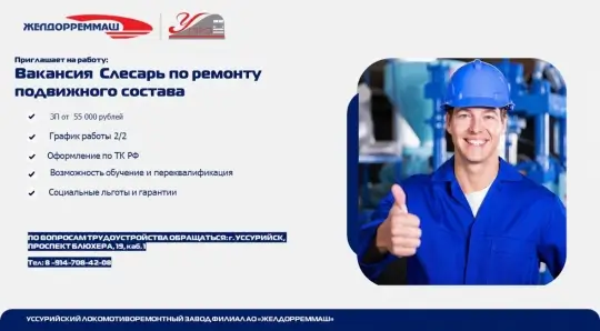 Требуются слесари по ремонту подвижного состава на участок по ремонту вагонов (3 чел.).